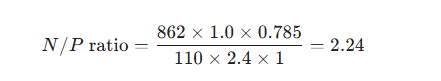 The N/P ratio is calculated as follows: