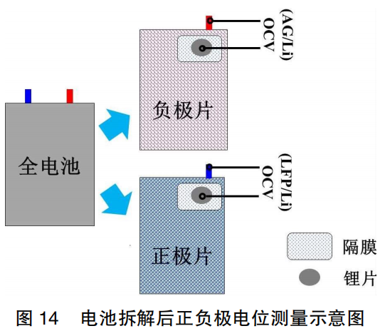 The full cells were disassembled, and the OCV values of the LFP/Li half-cells and Gr/Li half-cells were measured in real-time, as shown in Figure 14. As indicated in Table 4, the OCV of the Gr/Li half-cell decreased significantly by approximately 42 mV, whereas the OCV of the LFP/Li half-cell changed by only 2 mV. This demonstrates that the changes in the negative electrode induced by the SOC are the primary cause of the OCV voltage step at this stage.