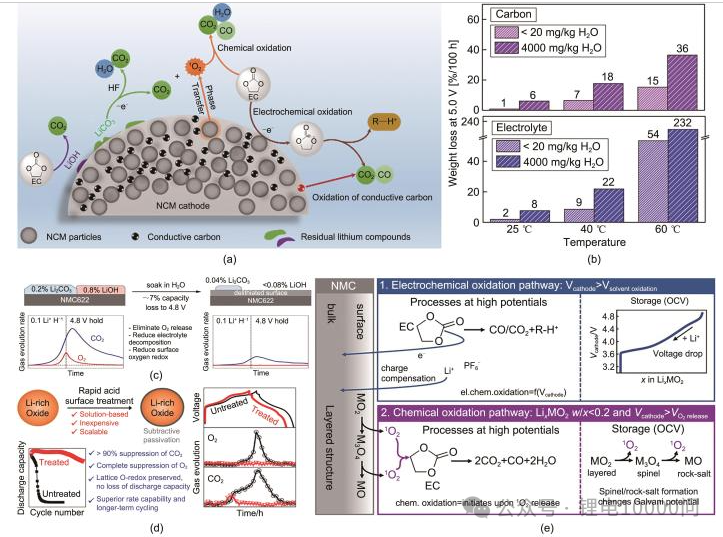 Oxygen: The “Endogenous” Gas of Ternary Materials Oxygen is a unique “endogenous” (internally generated) gas for NCM materials. Under conditions of overcharge, high temperatures, or prolonged cycling, the cathode material undergoes a structural phase transition—shifting from a layered structure to a spinel phase, and eventually to a rock-salt phase. This process triggers the release of lattice oxygen. These highly reactive oxygen species then “attack” the electrolyte, sparking a chain of decomposition reactions that produce large volumes of gases like CO2.
